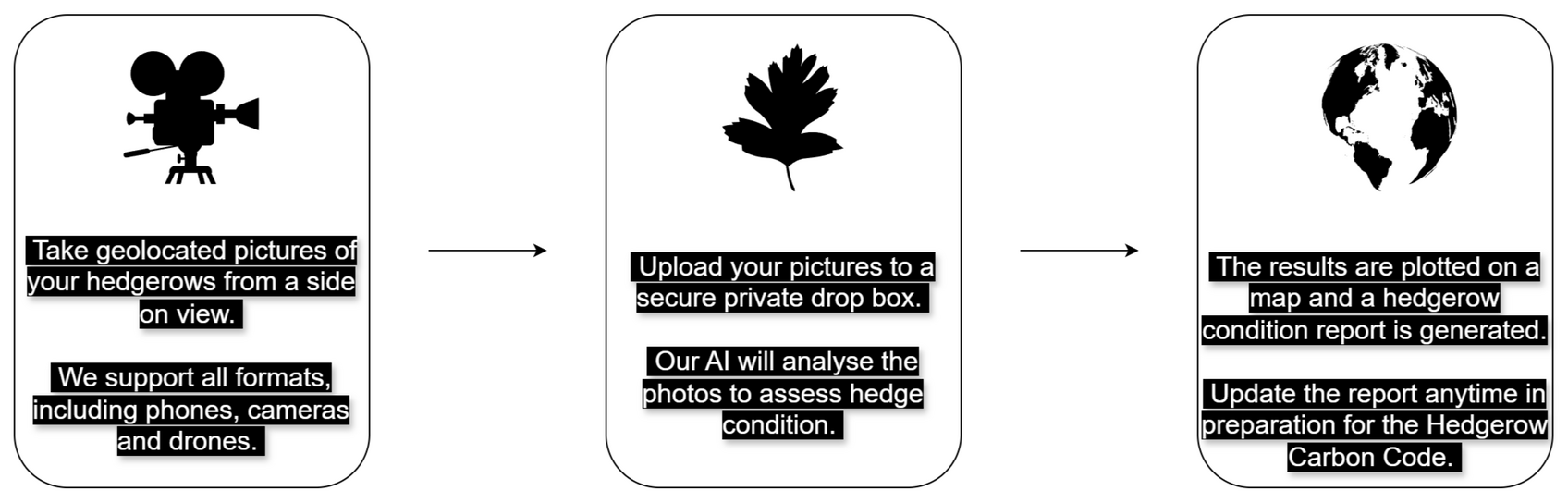 Claim your £50 per side per km hedgerow SFI grant payment simply with photos, thanks to our reports.Fulfil your obligations for SFI CHRW1, assess your hedge habitats for nature disclosures and get ready for the Hedgerow Carbon Code by using our hedgerow assessment tool.How it works.A report is generated using AI analysis of hedge photos taken side on. Create maps of your hedges and get actionable insights.